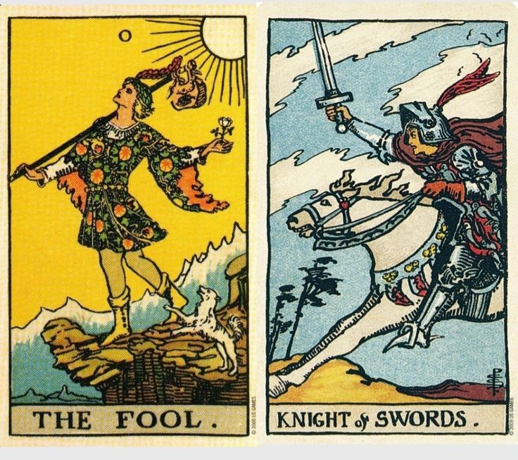 Сочетание Шута (0) и Рыцаря Мечей — это стихийное начало с агрессивным, решительным и прямолинейным движением к цели.
