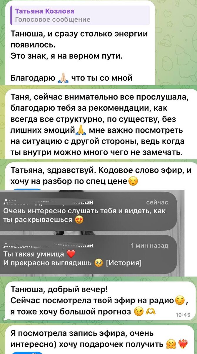 Сердечная благодарность 🙏 Друзья, хочу выразить вам огромную благодарность! За ваши отзывы, искренние отклики и драгоценную обратную связь. Знаете, это невероятно ценно — видеть, как идеи находят отклик, как вы пользуетесь подарками после эфиров, доверяете, заказываете прогнозы... И самое главное — пишете те самые слова, которые согревают и дают сил двигаться дальше. Практически каждый день! Я искренне восхищаюсь нашей с вами атмосферой доверия и глубины. Вы — потрясающие. Благодарю, что вы есть. Я очень ценю наше пространство и каждого из вас💫