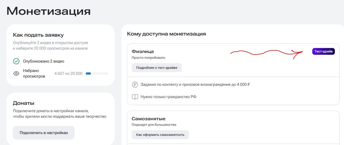 Чтобы попасть в «тест-драйв» для начинающих, нужно уже иметь новый, завышенный порог в 20 000 просмотров. Тот самый, который всех возмутил.