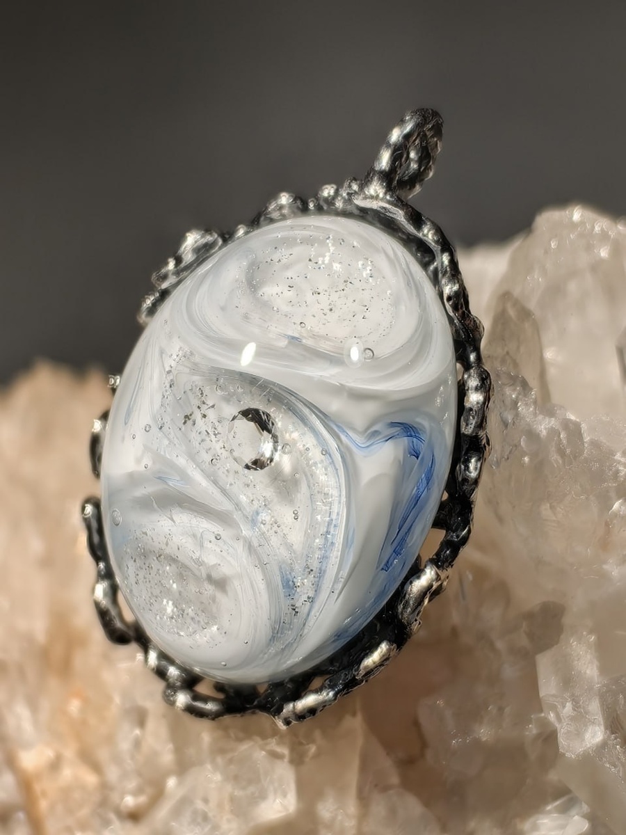 Снежный кабошон с фианитом внутри.
