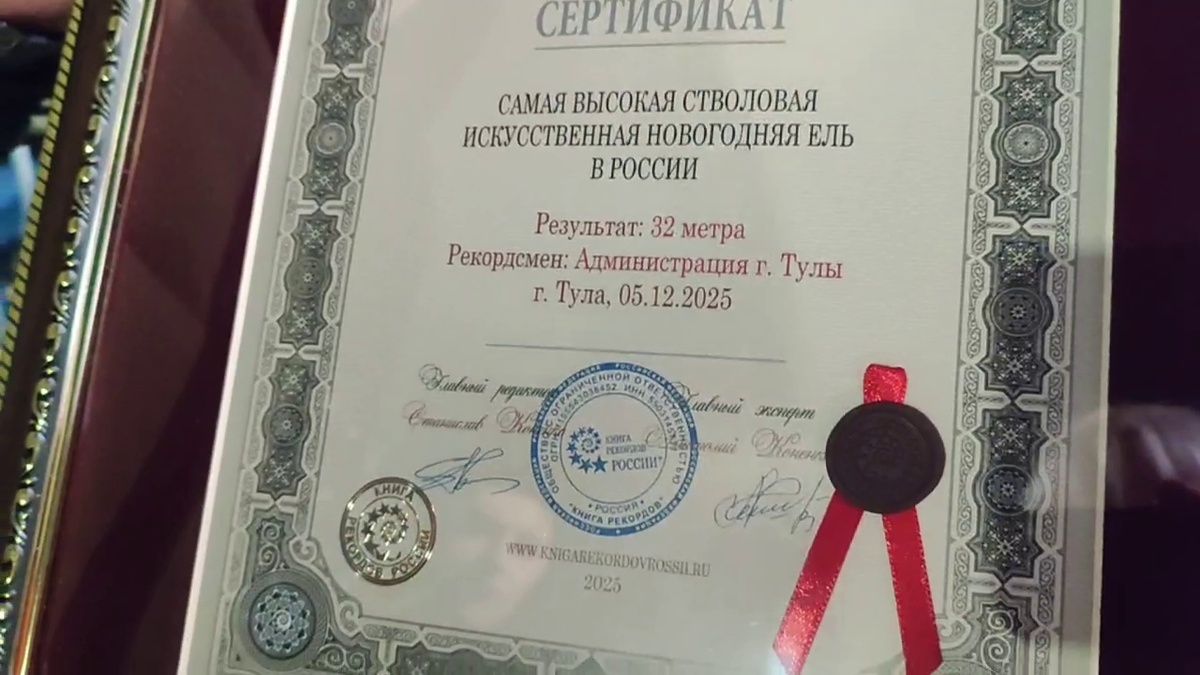 На главной площади Тулы зажигает огни новогодняя ель, получившая статус самой высокой стволовой искусственной ели в России. Её высота составляет 32 метра. Праздничное дерево украшает мультимедийный шатёр диаметром 60 метров с управляемой гирляндой протяжённостью 30 километров. На ветвях красуются яркие игрушки в виде тульских пряников, самоваров и подков. Для жителей и гостей города это уже стало центром притяжения: во время открытия Губернского катка на площади царит атмосфера праздника, работают ярмарки, звучит музыка, а на большом экране туляков поздравляет хоккеист Александр Овечкин. В этом году площадь Ленина украшает целый комплекс новогодних деревьев, но главная ель-рекордсменка с её 300 тысячами диодов и 30 видеопрограммами, безусловно, стала центральным элементом праздничного оформления областной столицы.