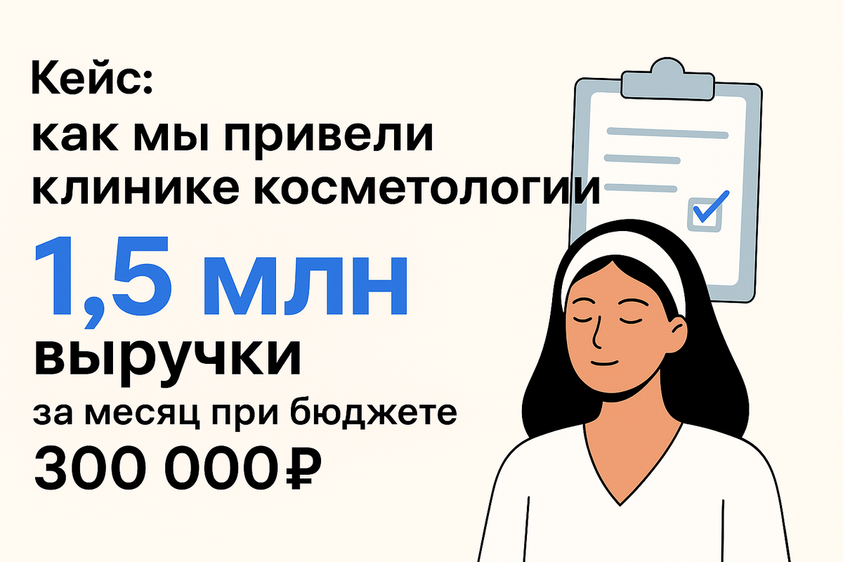 В этой статье вы узнаете: какие каналы дали самый дешёвый лид; почему ставка на дешёвую первичку — лучший вход для косметологии; как квиз-форма в Яндекс.Директ дала самую высокую конверсию; как рекламный бюджет 300 000₽ превратили в 1,5 млн выручки. 1. Вводные данные проекта Клиника косметологии обратилась с задачей выстроить системный поток заявок и увеличить долю первичных клиентов.