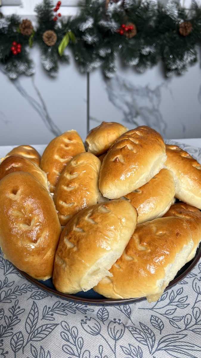 Это пирожки с классическим сдобным тестом и кисло-сладкой освежающей начинкой из щавеля. Выход: 20 пирожков Время приготовления: ~ 3 часа (с учетом подъема теста) СПИСОК ИНГРЕДИЕНТОВ ТЕСТО (выход ~1,1 кг): — Сметана — 200 гр (10-20% жирности) — Сахар — 100 гр — Яйца — 2 шт. + 1 яичный белок (желток сохранить для смазки) — Растительное масло — 80 гр без запаха — Соль — 1 ч.л. (5-6 г) — Дрожжи инстантные (сухие быстродействующие) — 10-11 гр (стандартный пакетик) — Мука пшеничная в/с — 550 гр (+/- 30-50 гр для работы с тестом) НАЧИНКА (выход 600-650 гр): — Листья щавеля — 400 гр очищенные от стеблей — Сахар — 90 гр — Ванильный сахар — 10 гр - 1 пакетик — Крахмал — 20-30 гр кукурузный или картофельный — Яблоки кисло-сладкие — 2-3 средних шт. или Ягоды (клубника, малина) — 200-300 гр (по желанию) ДЛЯ СБОРКИ И ВЫПЕЧКИ: — Яичная смазка: 1 желток + 1 ст.л. молока/воды — Сливочное масло — 15-20 гр (для смазывания горячих пирожков) — Мука — для подпыла — Растительное масло — для смазыван