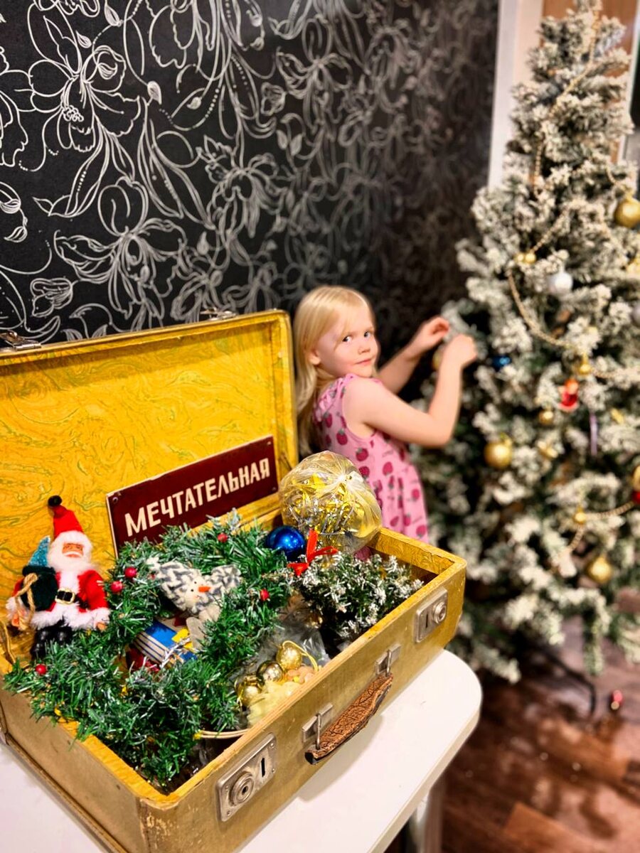 Из глубин кладовки был извлечён раритетный экземпляр под кодовым названием «Мечтательная» — видимо, потому что все годы мечтал, чтобы его нашли. Внутри были: — коробка миниатюрных игрушек из СССР, который явно старше всех участников украшательской бригады. — Загадочный конус, похожий на артефакт древней цивилизации (или просто отвалилась петелька). — Пластмассовый Дед Мороз, который, кажется, пережил не один переворот в дизайне ёлочных трендов. Теперь ёлка выглядит так, будто её украшали: — 30% ностальгии («Ой, это же я в садике клеила»), — 50% упрямства («Нет, этот кривой шарик ТОЧНО влезет между веток»), — 100% детской радости конечно 😌