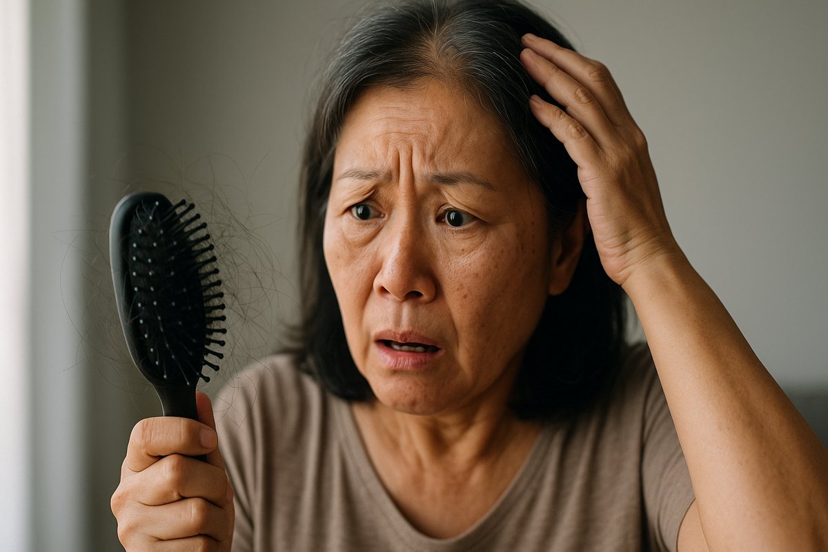 Когда щитовидная железа начинает работать медленнее (а это частая история после 50), замедляется вообще всё. Метаболизм ползёт, как улитка. Энергии не хватает. И волосам — тоже. Они начинают выпадать диффузно, равномерно по всей голове. Не очагами, как при некоторых других состояниях, а просто становятся редкими, тусклыми, безжизненными.