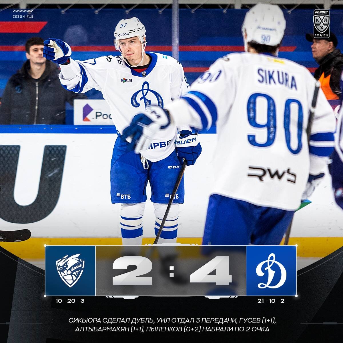 🔵 Московское «Динамо» впервые с 2015 года побеждает в Тольятти! #ФонбетКХЛ