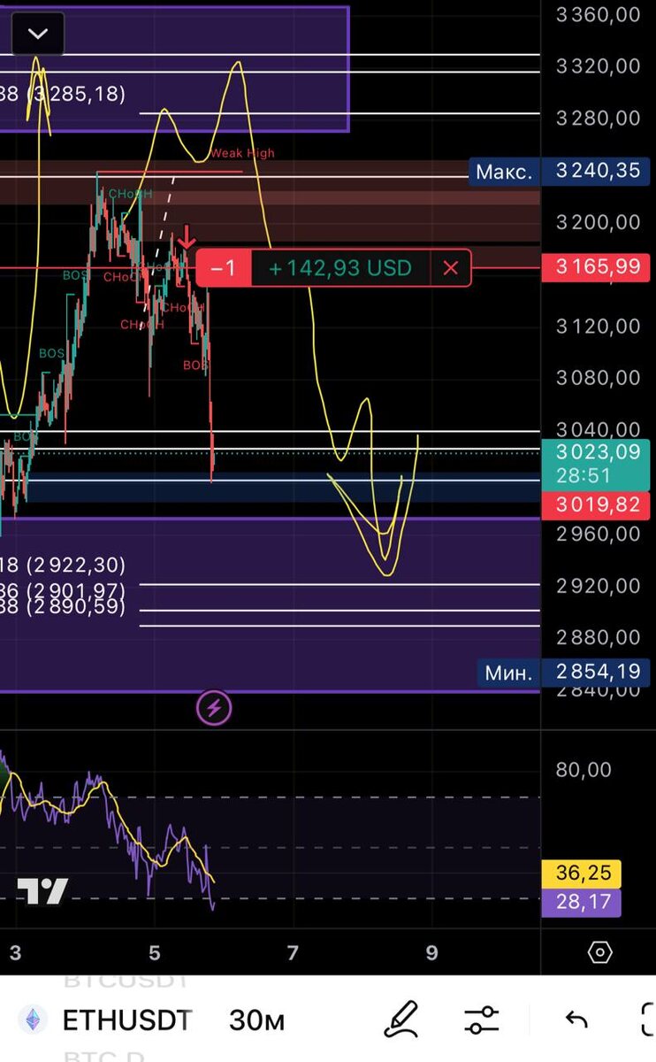 В ответ на пост ETHUSDT 😁 Шорт закрыл, готовлюсь действовать по этому плану🫡 #ETH #крипта