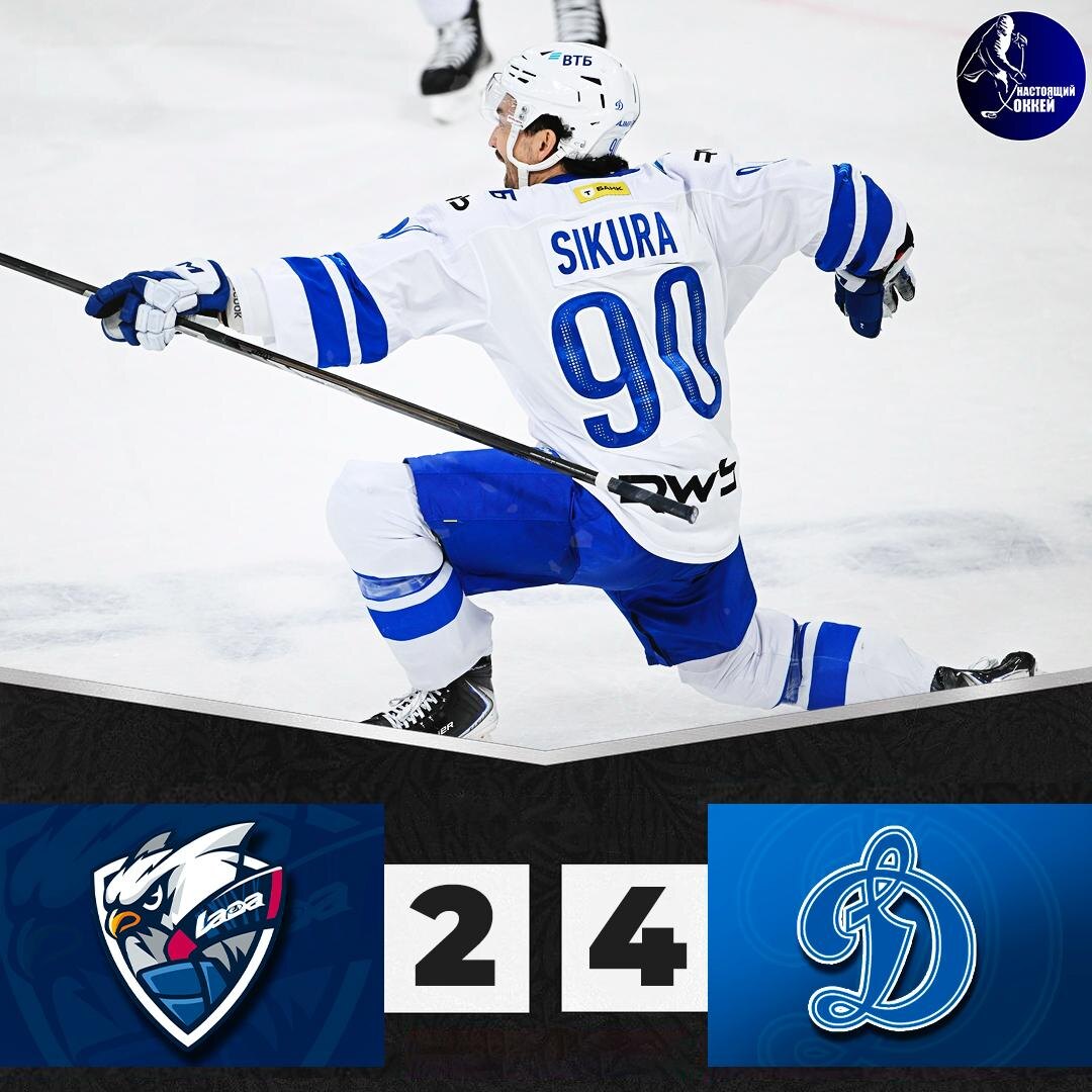 ⚡️🔵 Московское «Динамо» одержало пятую победу кряду, одолев «Ладу» 🚙 Лада – 🔵 Динамо Москва – 2:4 (0:0, 1:2, 1:2) 🔵 0:1 Гусев (Уил, Пыленков) – 23:40 (5x3) 🚙 1:1 Алтыбармакян (Сетдиков, Белоусов) – 27:11 (5x5) 🔵 1:2 Сикура (Гусев, Уил) – 38:10 (5x5) 🚙 2:2 Михайлов (Алтыбармакян, Белоусов) – 41:21 (5x4) 🔵 2:3 Сикура (Пыленков) – 48:03 (5x4) 🔵 2:4 Ильенко – 56:40 (5x5) 🥅 Вратари: Бочаров – Моторыгин 📱 Подпишись на НАСТОЯЩИЙ ХОККЕЙ