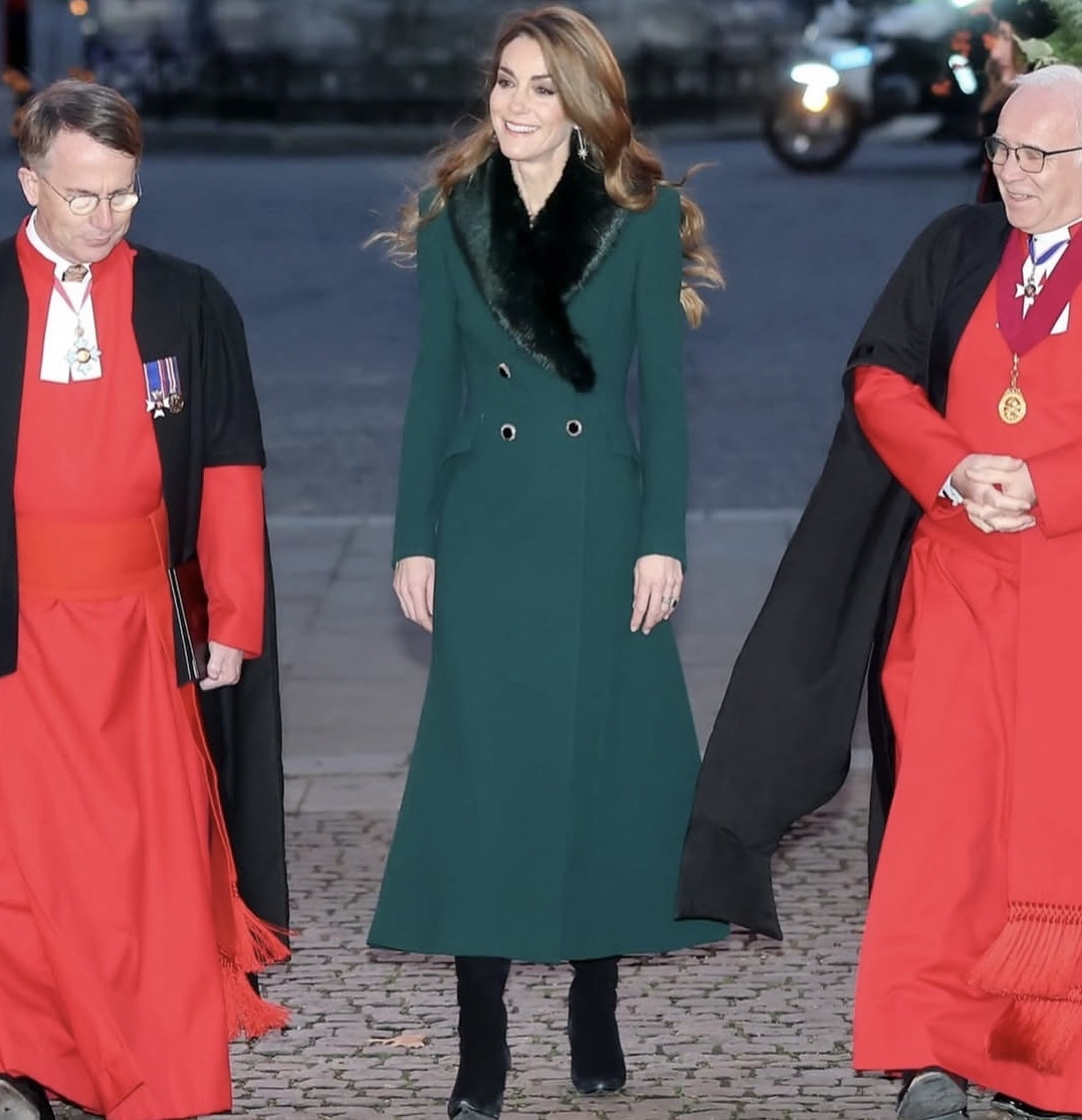 В пятый, юбилейный раз, Кэтрин проводит свой праздничный вечер " Вместе в Рождество" в Вестминстерском аббатстве . Позднее я опишу подробно декор, темы и всех присутствующих. Сейчас лишь краткий обзор наряда самой принцессы и ее детей. Традиционно на песнопения и колядки здесь принято надевать оттенки зеленого, красного, синего и белого. Именно этим, я думаю, был обоснован выбор старого уютного пальто со съемным меховым воротником от Troy London , которое сшила для Кэтрин дизайнер Catherine Walker.Она его надевала еще в 2020-м. Мне очень понравились ее бриллиантовые серьги-звездочки. Их назвали "Царская звезда", а создали украшение в Robinson Pelham.Как я понимаю, это отсыл к звезде Вифлеема, указавшей путь трем царям. На принцессе мы видим сапоги от Ralph Lauren. Юбка с тартаном и усыпанная стразами Сваровски из коллекции итальянского бренда Miu Miu и это обновка. На первых фото я разглядела сзади принца Майкла Кентского, герцогиню Глостерскую и леди Фредерик Виндзор.