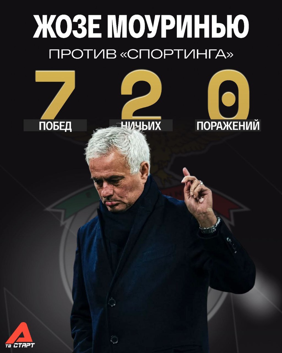 😏🔝 Жозе никогда не проигрывал «Спортингу» За всю историю противостояния с командами Моуринью у «львов» всего две ничьи. Он побеждал лиссабонцев с пятью разными командами – от «Лейрии» до «Челси». С «Бенфикой» Жозе обыграл «Спортинг» 3 декабря 2000-го года. Повторит успех сегодня 25 лет спустя? Узнаем в 23:15 на телеканале «Старт» и платформе TVSTART.RU 🖥 🛒 Наше приложение в Google Play 💙 Наше приложение в RuStore 🛒 Наше приложение в App Store