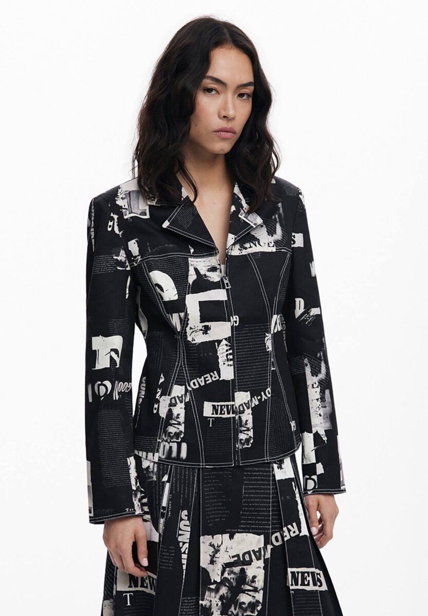 бриллианты с Lamoda сегодня прошлась по скидкам и зацепила две моднючии позиции лот номер один. приталенный жакет с газетным принтом. носить как минимум с классическими брюками, как максимом с юбкой в тон платье мини с мехом по подолу. твигги 60х не меньше. сильно нравится desiqual, loverepublic