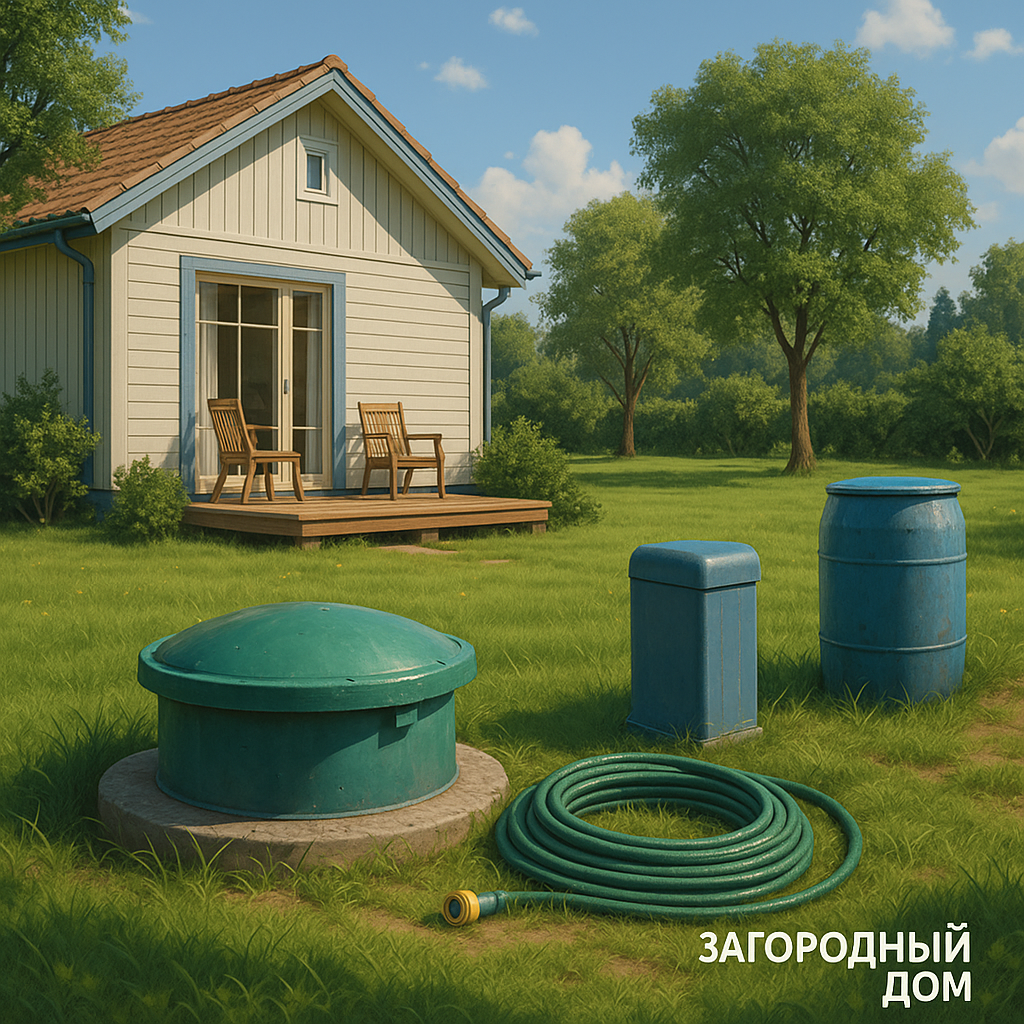 Скважина, насос, гидроаккумулятор, фильтры, разводка по дому.