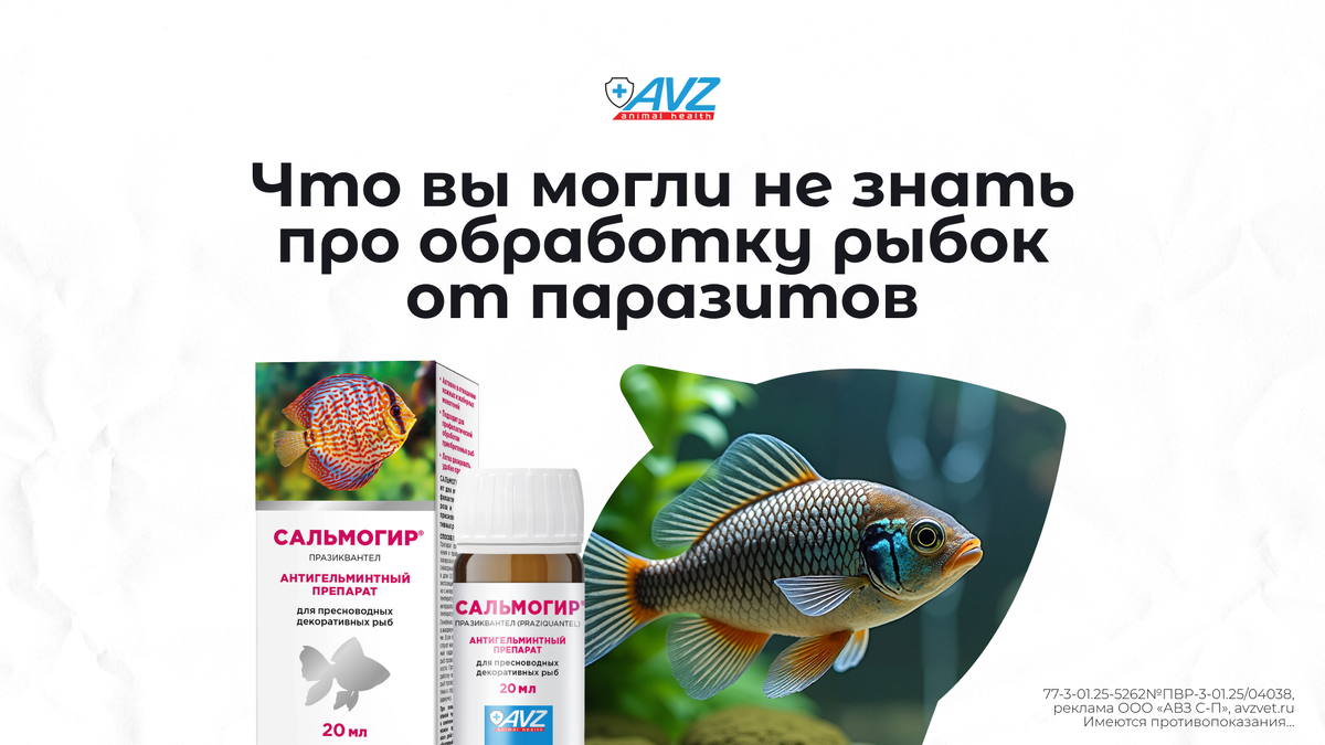 Erid: 2Vtzqud3rJD Реклама ООО "АВЗ С-П" ИНН: 5042113943 Аквариум – это очень красивый маленький мир, но, только до тех пор, пока его обитатели здоровы. Подселить пару-другую красочных данио, дополнить стайку гурами, запустить замечательного сомика – что в этом может быть плохого? Но однажды вы можете заметить, что рыбки выглядят не так хорошо, как в момент покупки. Жабры оттопыриваются, чешуя покрыта странными пятнами, да и цвета поблекли. А потом на поверхности воды начинают появляться снулые рыбы, причем и из новой партии, и из старожилов. В чем причина? Новые рыбки – новые проблемы Каждый новый обитатель аквариума – это потенциальный источник проблем. В самом деле, в последние годы в нашей стране разводят много декоративных рыбок. По правилам, они должны проверяться на дактилогироз и гиродактилез. Но поставки из-за рубежа остаются весьма актуальными. Рыбки-эмигранты могут быть переносчиками паразитов, которые не всегда можно выявить после транспортировки. И шанс, что вы принесет