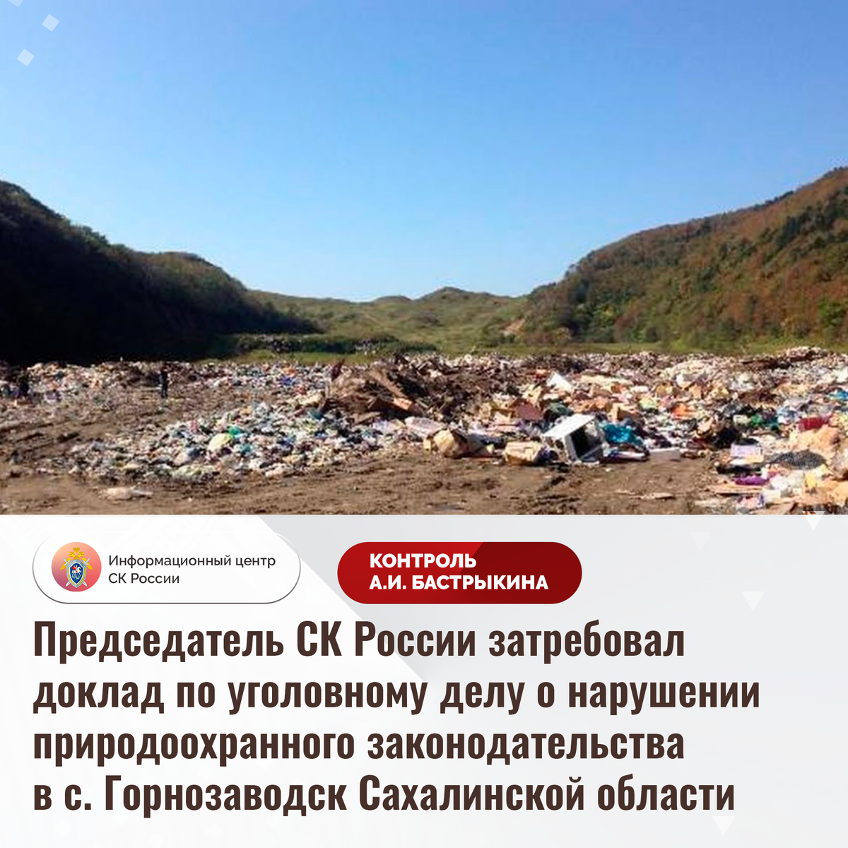 Председатель СК России затребовал доклад по уголовному делу о нарушении природоохранного законодательства в с. Горнозаводск Сахалинской области В сети Интернет сообщается, что на протяжении длительного времени в селе Горнозаводск Сахалинской области бытовые и иные отходы вывозились на земельный участок, расположенный вблизи жилых домов. Указанное оказало негативное влияние на состояние окружающей среды. При этом запланированные на текущий год работы по рекультивации земель и ликвидации свалки не проведены. В СУ СК России по Сахалинской области возбуждено уголовное дело. Председатель Следственного комитета Российской Федерации Александр Иванович Бастрыкин затребовал у руководителя СУ СК России по Сахалинской области Бэликто Балдоржиевича Базарова доклад о ходе и результатах расследования уголовного дела. Исполнение поручения поставлено на контроль в центральном аппарате ведомства. #СледственныйКомитет #СКРоссии #СКР #ИЦСКР #ИнформационныйЦентр #АлександрБастрыкин #ПредседательСКР #Кон