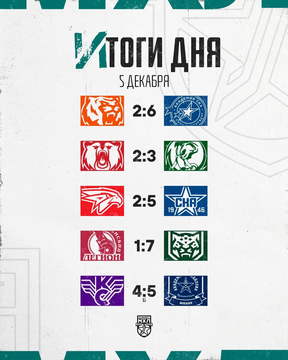 Во всех пяти встречах дня победы одержали гости: «Ирбис» забросил 7 шайб в ворота «Тюменского Легиона», «АКМ-Юниор» и «Крылья Советов» выявили сильнейшего в серии буллитов 🏒@mhlrus