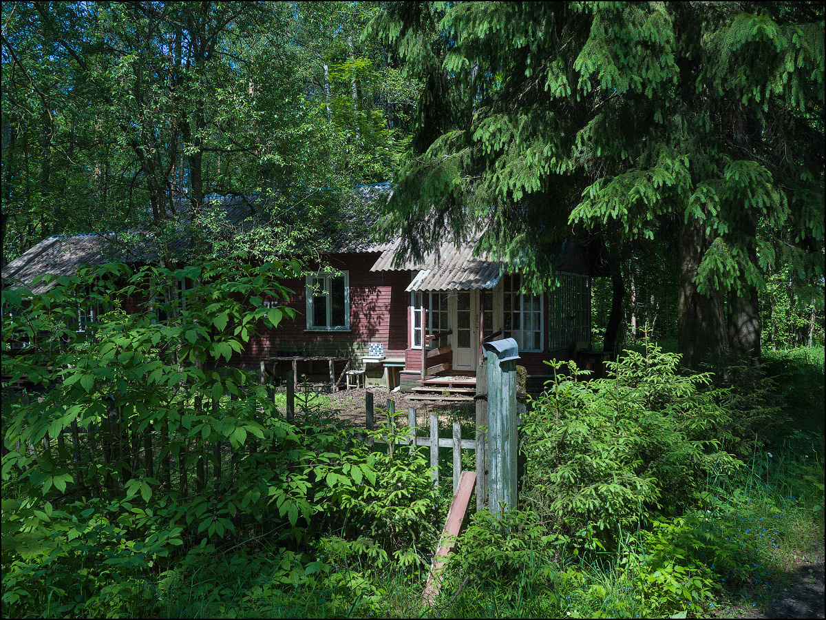 По пути мы узнали за высоченным забором один из домов с музейных фотографий — потрясающей красоты дачу Юхневича.
