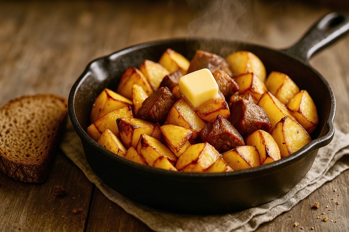 Здесь уже речь не про «несовместимость», а про избыток калорий, насыщенных жиров и нагрузку на сосуды и поджелудочную. Картошка с тушёным мясом и овощами на обычной тарелке — это ужин. Картошка, мясо, «литр» соуса и пирожное сверху — уже совсем другая история.