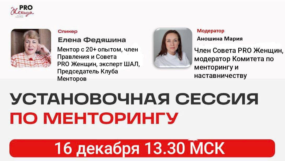 Менторская программа PRO Женщин 🔴 УСТАНОВОЧНАЯ СЕССИЯ 🔴 📍16 декабря (мск) в 13:30 (в Контур.толк) Комитет по Менторингу и Наставничеству совместно с Клубом Менторов сообщества PRO Женщин проводит открытую установочную ОНЛАЙН-СЕССИЮ (УС) для участниц и лидеров PRO Женщин. УС по менторингу и наставничеству - это один из уникальных инструментов в Сообществе, который напрямую перекликается с методологией PRO Женщин. Обязательно используйте эту возможность и возьмите менторинг в свою "копилку лидера". С 2025 года участие в Установочной сессии по менторингу является обязательным для всех, кто выбирает роль Ментора и рекомендовано для Менти в рамках менторской программы PRO Женщин - для того, чтобы ваши тандемы "ментор-менти" приносили вам только положительные эмоции и изменения. Подробнее о менторской программе - здесь. https://pro-women.org/mentoring/ На встрече мы расскажем: 🔺о ценности и основных правилах Программы Менторинга и Наставничества; 🔺о ключевых отличиях менторинга