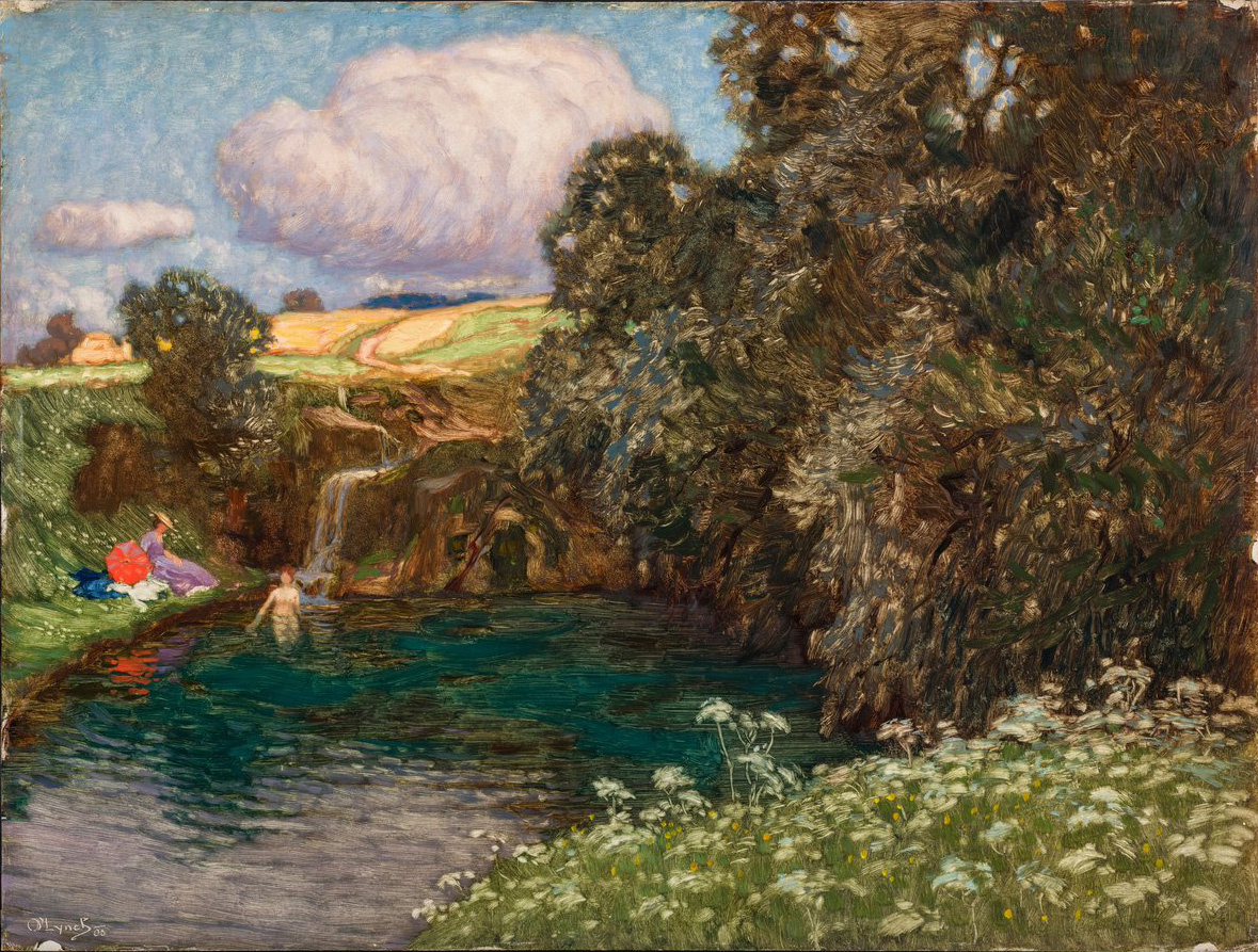 Ирландские предки художника эмигрировали после участия в Якобитском восстании в конце XVII века. Карл О'Линч фон Таун (1869–1942) начал изучать рисунок в Граце, а затем поступил в академии изящных искусств в Вене и Мюнхене. Он основал художественную студию в Мюнхене, где поддерживал связь с кругом Эмиля Якоба Шиндлера (1842–1892), в то же время регулярно выставляя свои работы в Граце и Вене. С 1904 по 1906 год он был членом группы Hagenbund, которая объединяла местных прогрессивных художников в годы, последовавшие за внутренними конфликтами в Венском сецессионе. О'Линч часто путешествовал по Европе, и куда бы он ни направлялся — будь то южные пляжи или альпийские скалы — он предавался своему любимому занятию — пейзажной живописи. С самого начала его картины несли на себе печать символизма, влияние которого особенно ярко проявилось в идиллической сцене, изображенной на картине «Голубое озеро». Его подход к пейзажу включает в себя акцентирование атмосферных элементов с помощью чис
