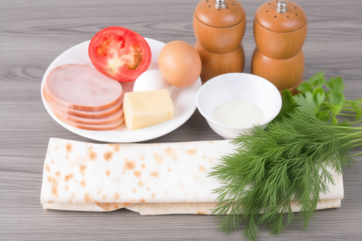 • Масло растительное — 1 ст. л. Для украшения (по желанию): укроп, петрушка 1. Подготавливаем продукты Подготовьте все ингредиенты сразу — это ускорит процесс. Ветчину можно заменить колбасой, копчёностями или увеличить порцию сыра, если хотите более лёгкий вариант. 2. Формируем основу Из листа лаваша вырежьте круг по размеру вашей сковороды. Это займёт меньше минуты и обеспечит идеальную форму. Можно купить сразу круглый. 3. Делаем яичную базу В миску разбейте два яйца, добавьте соль и перец.