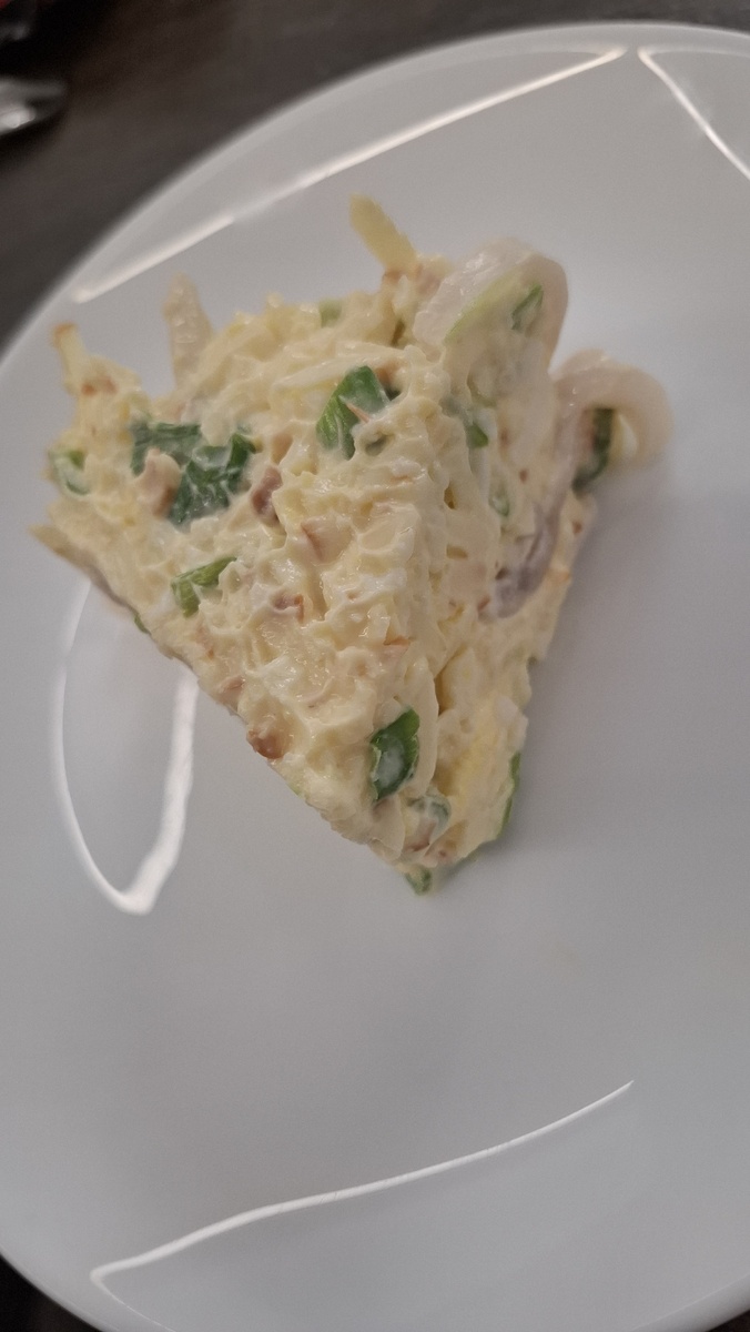 Салат с копчёным сыром, кальмарами и зелёным луком