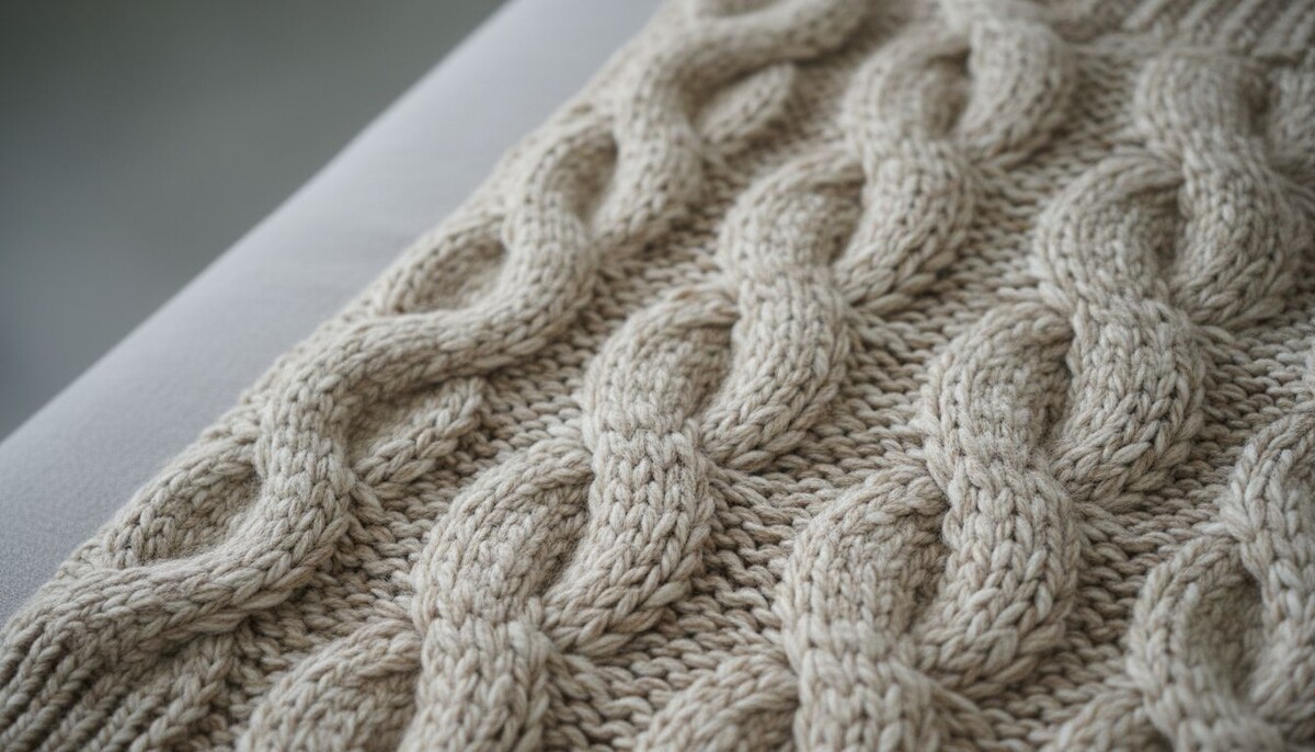 - Плотность Вязки: Нить толстая, а сам узор «косы»- глубокий, трехмерный, почти скульптурный.