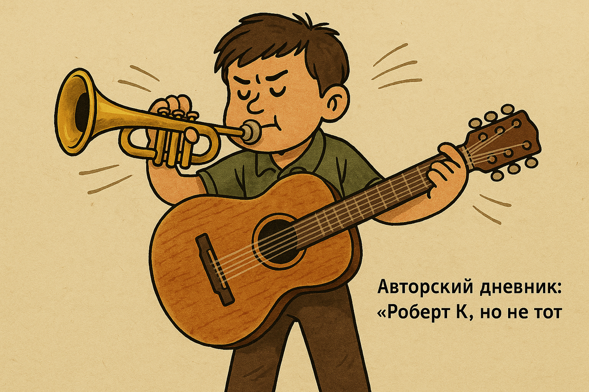 Энергия — как у моторчика. Он за неделю создал школьный духовой оркестр.Подошёл ко мне, протянул трубу поменьше: «Держи корнет. Попробуешь?» Я попробовал. И понял: вот оно, взросление — тихое, настоящее, без фанфар. Параллельно у нас поселился двоюродн