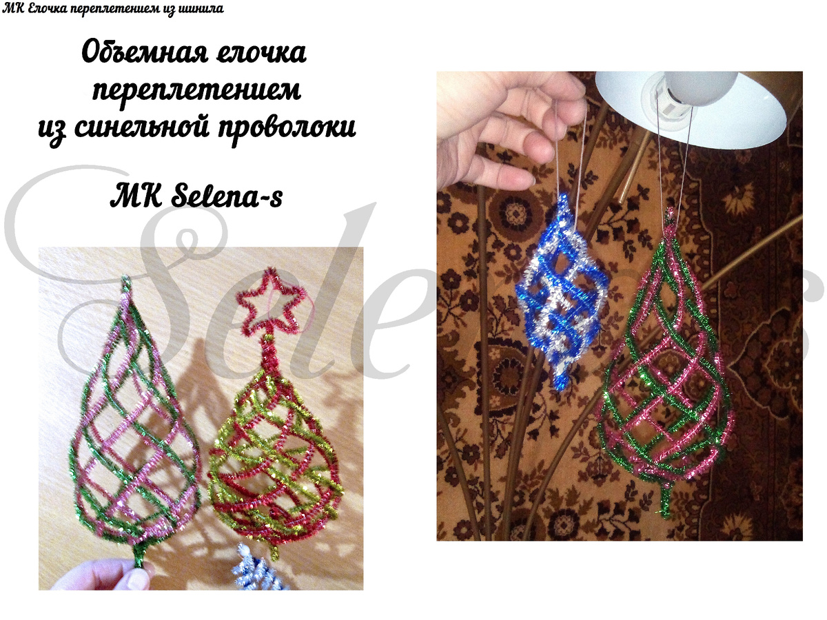 Такие елочки можно и подвесить на 😁 елку как игрушку, а можно и посадить как деревце! Запасаемся синелькой, 💕 смотрим, читаем - и делаем! В этих елочках не нужны клей или основа, только проволока, ваши ручки, и немного времени! 😜 И терпения. Если хочется еще подобного для 🎄 Нового года, то посмотрите мою подборку Синельная проволока (шинил, пушистая проволока) - там есть еще! До новых встреч! 😘