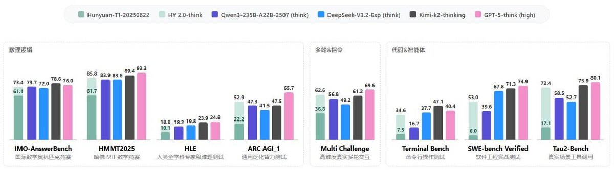 ⚡️ Tencent официально представила HY 2.0 - крупное обновление своей базовой модели. Модель построена на архитектуре Mixture of Experts с общим размером 406B параметров и 32B активных. Модель поддерживает контекст 256K токенов. HY 2.0 демонстрирует заметные улучшения на ключевых бенчмарках. Главные достижения HY 2.0: 🧠 Reasoning: результат 73.4 на IMO AnswerBench - почти плюс 20 процентов, что закрепляет модель среди лидеров по математическому и научному мышлению. 🛠 Coding и Agents: скачок в SWE Bench Verified с 6.0 до 53.0, а Tau2 Bench вырос с 17.1 до 72.4. ⚡ Instruction Following: более стабильное выполнение сложных инструкций и естественный стиль ответов. Модель выпускается в двух вариантах: • HY 2.0 Think - для глубокого рассуждения, генерации кода и сложных задач • HY 2.0 Instruct - для диалога, креативного письма и многотуровых контекстных бесед 🌐 Website: https://hunyuan.tencent.com 🔗 API Access: http://hunyuan.cloud.tencent.com/#/app/modelSquare 📄 Documentation: https