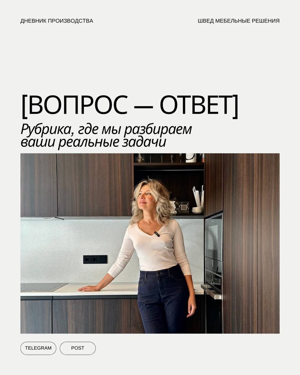 В каждом проекте есть свои нюансы: материалы, конструкция, логика монтажа, работа фурнитуры, связь мебели с архитектурой. Мы собрали отдельную рубрику, чтобы говорить об этом открыто и предметно. Оставьте свой вопрос в комментариях, а мы разберем его в следующих постах. Если тема сложная, подготовим отдельный разбор с примерами из практики. Это пространство для точных вопросов и честных ответов.