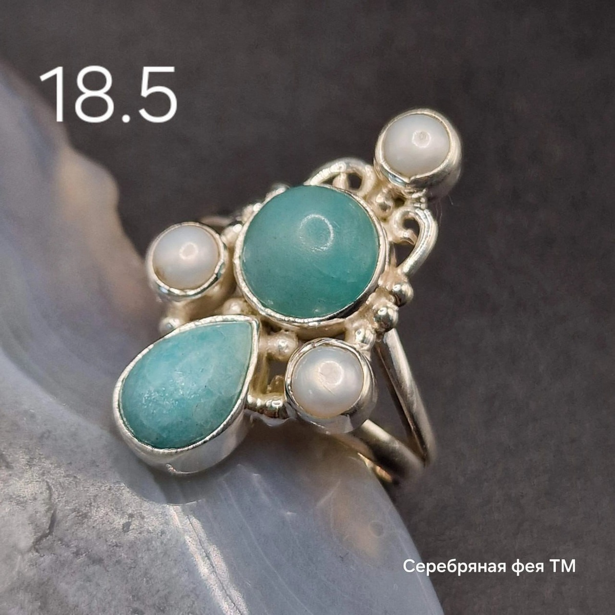 3300р, #амазонит Перу, #жемчуг, серебро Индия #кольцо