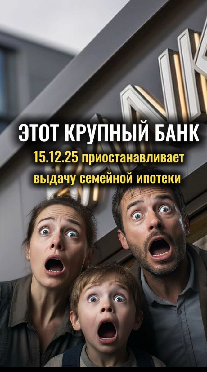 СМЕНА ПРАВИЛ СЕМЕЙНОЙ ИПОТЕКИ С 15 декабря — пауза от Сбербанк Недавно крупнейший игрок на ипотечном рынке, Сбербанк, объявил, что с 15 декабря приостанавливает выдачу семейной ипотеки. Это сигнал тревоги для тех, кто всё ещё надеется получить ставку ~6 % при покупке жилья. Подобный шаг первых банков часто знаменует начало цепочки — остальные кредитные организации могут последовать примеру. Для многих это повод задуматься: пока вы оцениваете — льготная ипотека может стать недоступной. ТЫ МОЖЕШЬ УСПЕТЬ БУКВАЛЬНО В ПОСЛЕДНИЙ ВАГОН НУЖНА КОНСУЛЬТАЦИЯ? ПИШИ - 89242078339 Оксана 89294114802 Анна #недвижимость #семейнаяипотека #покупкаквартиры #хабаровск #ипотекадальневосточная
