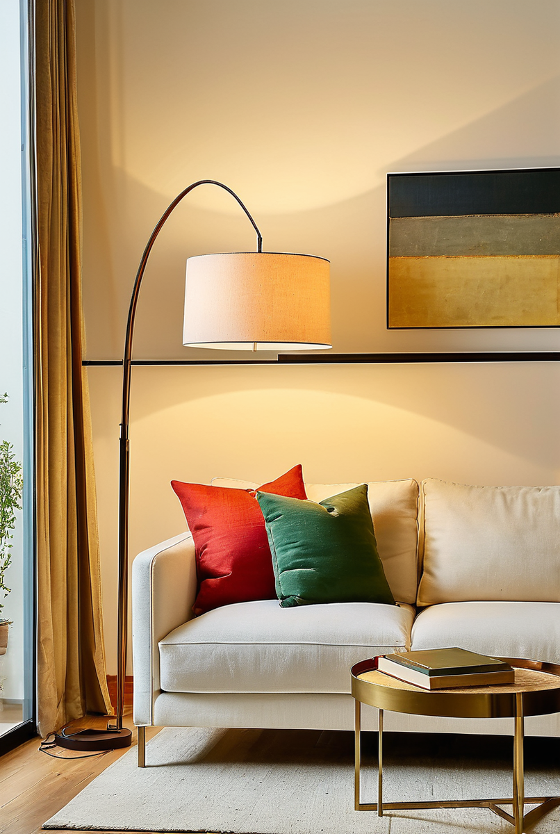 Да, арочный торшер — это стильное и функциональное решение для освещения в гостиной, особенно в квартирах-студиях или там, где нет возможности установить потолочный светильник в нужном месте (например, над кофейным столиком). Его длинная изогнутая «рука» позволяет разместить источник света прямо над центральной точкой зоны отдыха. Это прекрасный пример, как размещение в интерьере одного элемента может решить сразу несколько задач: обеспечить качественный локальный свет, выполнить зонирование пространства и стать ярким элементом акцентного освещения. Особенно эффектно смотрятся модели в стиле современный стиль или минимализм. Также существуют модели, как классический торшер, так и более функциональные, например, торшер со столиком или технологичный светодиодный торшер.