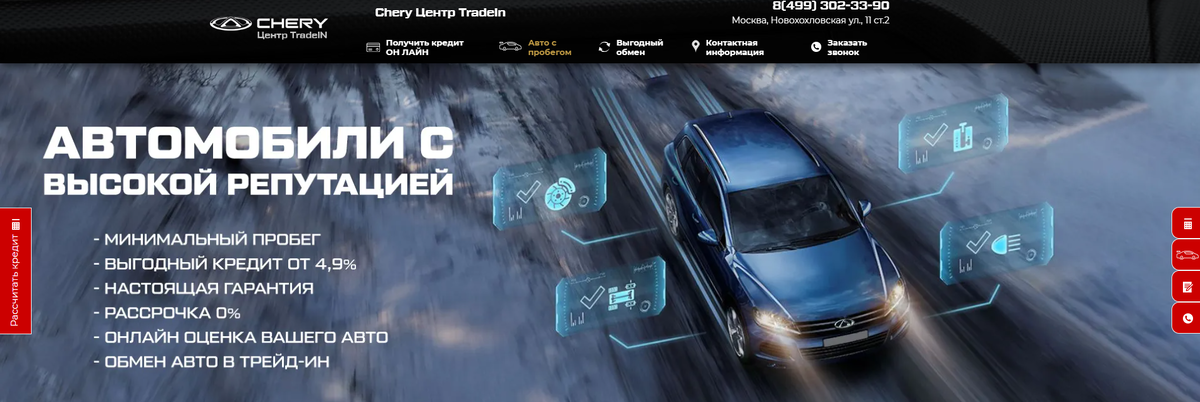 Chery Центр TradeIn — это автосалон в Москве. Занимается продажей новых автомобилей. Связан с несколькими дилерами из нашего черного списка. Больше интересного — в нашем обзоре. Справка об автосалоне, информация о владельце и проверка по судебным базам Адрес: Москва, Новохохловская ул., 11 ст.2 Сайт: chery-trade.ru Тип: мультибрендовый автосалон, серый дилер Направление работы: продажа новых автомобилей В автосалоне на Новохохловской 11ст2 в Москве можно купить новый автомобиль. По крайне мере, так обещают на рекламном сайте, который попадается в поиске по целевым запросам. Однако ресурс сделан по шаблону. Подобный сайт нам уже встречался — ЧЕРИ ЦЕНТР ПРОБЕГ, мы внесли его в наш черный список. Также немаловажно, что на обоих сайтах используется адрес, по которому, согласно данным Я.Карт, нет автосалонов. Информация о владельце Владельцем автоцентра Chery Центр TradeIn является ООО "ВИРАЖ" (ИНН: 7722492996). Эта же фирма указана в качестве владельца на сайте ЧЕРИ ЦЕНТР ПРОБЕГ, а та