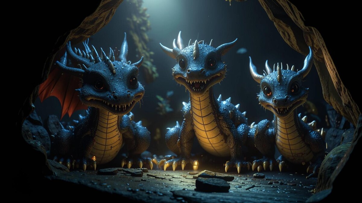 Три маленьких, по драконьим меркам, дракончика, изрядно помятые, перепуганные, с прижатыми к бокам крыльями, сидели спеленатые какой-то непонятной силой в помещении без окон.