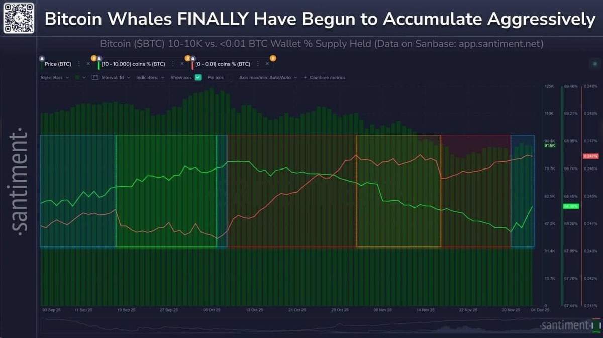 Santiment: после активных продаж в ноябре, киты наконец-то начали агрессивно покупать #BTC