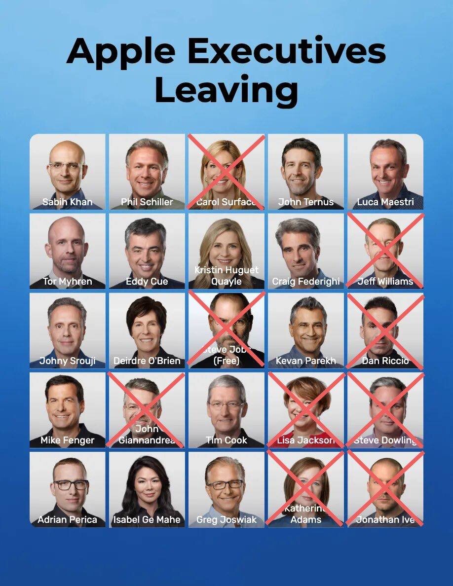 Apple покидает целый ряд топ менеджеров Только на этой неделе: Ушел главный дизайнер. Вице-президент по машинному обучению. Вице-президент по вопросам окружающей среды. Главный юрист компании. Что происходит, решительно не понятно. Может отказались устанавливать iOS 26?