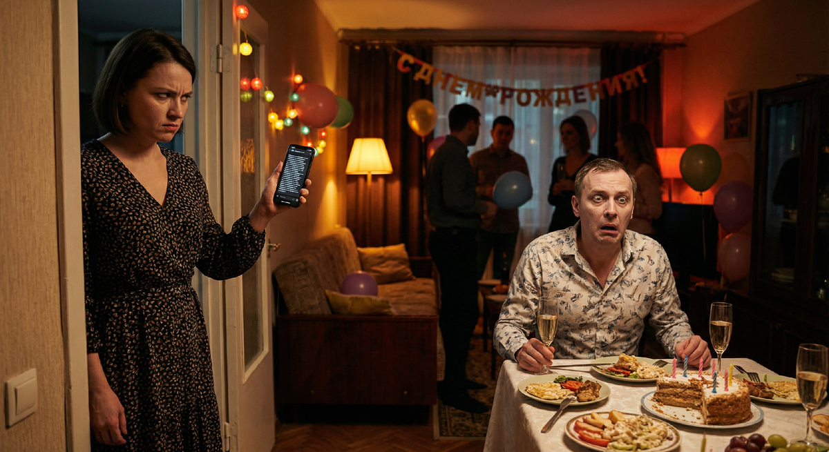 Торт стоял на столе — трёхслойный, с кремовыми розами. Анна купила его ещё вчера, спрятала в холодильнике за кастрюлями, чтобы Сергей не увидел раньше времени. Сорок лет мужу исполнилось. Круглая дата.