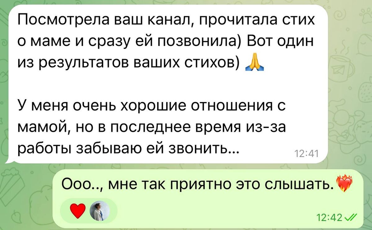 Отзыв о стиха «Маме - понять и простить» Я общалась с издателем книг. 📝Издатель написал в личном сообщении отзыв о стихах висевших в этот момент в сториз. Мне очень приятно,… Не так. ♥️Мне невероятно радостно от того, что мои стихи сподвигли +1 человека на волну добра и света. Вот эти стихи https://dzen.ru/media/id/68bf2826bc76f43b3cc6b53f/mame-poniat-i-prostit-692d78effaea59566f8200b8 🙏Спасибо, Людмила, что прочли. #обомне