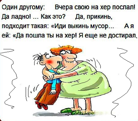 Оглянись вокруг. Все сущее, всего лишь результат оргазма... --------------------------------------------- Боксеру легче защитить диссертацию, чем написать ее. --------------------------------------------------- Жена-блондинка спрашивает мужа-грузина: Гоги, ты других женщин любил ? Уважал... ------------------------------------------------ Интеллигент никогда не скажет, Ушел и х…й с ним. он скажет: Ушел, сохранив достоинство. --------------------------------------------------- Можно из пуговиц от пальто сварить суп ? Конечно можно, если они вырваны с мясом. ------------------------------------------------ Опер допрашивает задержанного. Папиросы курите? Да, а что? с папирос косячок удобно делать. Такие привычки могут многое о человеке сказать. Задержанный смотрит на оперативника и вместе со стулом отодвигается как можно дальше. Зачем это ты? недоумевает опер. Да вы шариковую ручку частенько посасываете! А такие привычки тоже могут многое сказать о человеке... --------------------------