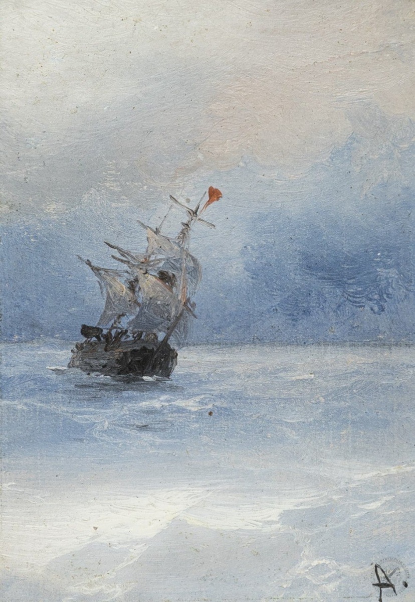 Русская антикварная галерея Сайт: rus-gal.ru #Айвазовский И. К. - #Картина «#Парусник в море» Россия, последняя четверть ХIХ века. Картон, масло. 11,1 Х 7,6 см #Реализм #Марина Подробнее: https://rus-gal.ru/works/kartina-parusnik-v-more/