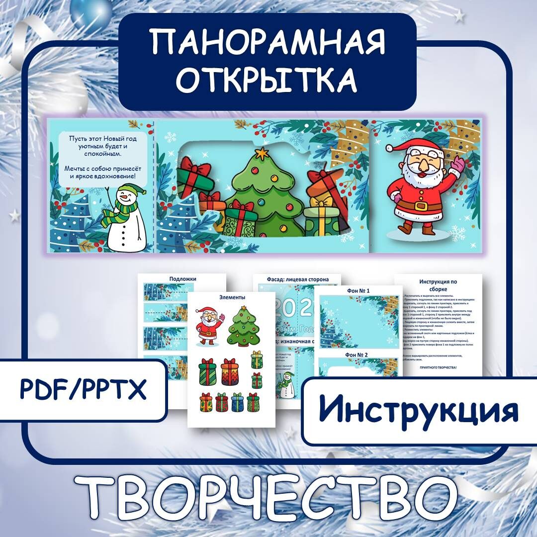 Все детали для сборки: фоновые страницы, объёмные элементы, крепежи и, конечно, подробная инструкция с примерами. От вас нужны только ножницы, клей и хорошее настроение! 🌟 Это больше, чем просто поделка: Творческий антистресс. Идеальный способ переключиться и погрузиться в праздник. Тренировка мастерства. Отлично развивает аккуратность, пространственное мышление и внимание к деталям. Повод для общения. Отличный проект для семейного вечера или творческого мастер-класса с детьми. Уникальны
