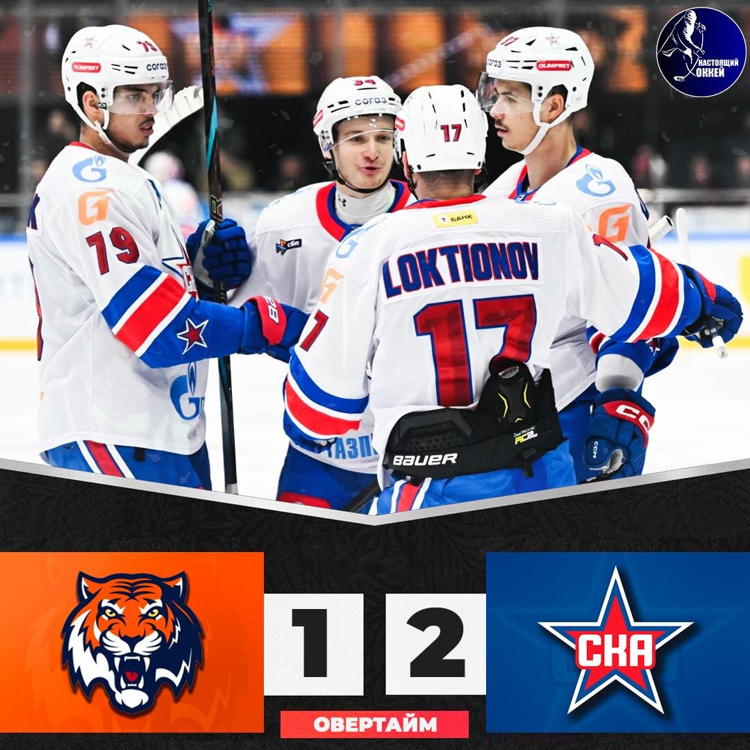 ⚡️⭐️ СКА отыгрался на последних минутах и вырвал победу у «Амура» в овертайме 🐯 Амур – ⭐️ СКА – 1:2 ОТ (0:0, 1:0, 0:1, 0:1) 🐯 1:0 Лихачёв (Свечников, Коротких) – 21:47 (5x4) ⭐️ 1:1 Хайруллин (Савиков, Плотников) – 58:18 (5x5) ⭐️ 1:2 Менелл (Голдобин) – 64:11 (3x3) 🥅 Вратари: Шаймарданов - Иванов 📱 Подпишись на НАСТОЯЩИЙ ХОККЕЙ