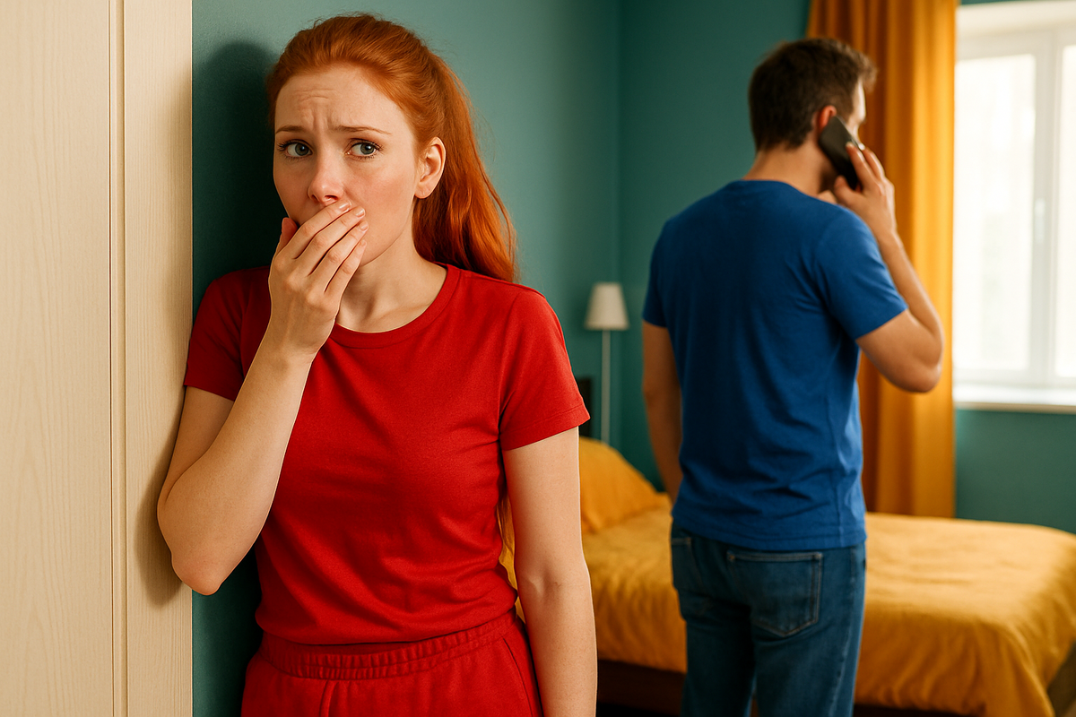 Она хотела окликнуть мужа, но не успела, потому что услышала, как он разговаривает с кем-то по телефону.