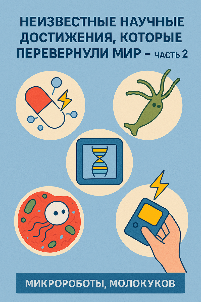 Мы продолжаем разбираться в удивительных научных открытиях, которые почему-то остаются за пределами громких новостей. Хотя именно такие “тихие” достижения часто и меняют будущее. В этой части мы поговорим о технологиях и исследованиях, которые звучат фантастически, но уже доказаны или находятся на серьёзной стадии изучения. 1. Лекарства, созданные с помощью электрического поля Учёные обнаружили, что слабое электрическое поле может менять форму некоторых молекул. Это открытие позволило создавать лекарства нового поколения — более точные, более безопасные и лучше всасываемые организмом. Простыми словами: - лекарства можно “подстраивать”, просто меняя электрическое воздействие; - уменьшается количество побочных эффектов; - препараты становятся эффективнее при меньших дозах. Эта технология уже используется в разработке противораковых средств и препаратов для редких заболеваний. Возможно, совсем скоро такие лекарства станут обычными. 2. Животные, которые почти не стареют В природе есть