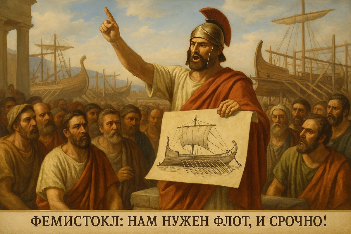 Фемистокл: "Будущее за флотом!" После победы при Марафоне многие думали, что всё кончилось. Но умный афинянин Фемистокл знал: персы вернутся. Он убедил афинян потратить деньги не на раздачу народу, а на строительство мощного военного флота. Триера: Супер-корабль с тремя рядами вёсел. Быстрый, маневренный, с мощным тараном. Экипаж: 180 гребцов (обычно бедняков), которые работали как единый механизм. Благодаря Фемистоклу 30 греческих городов объединились в союз, чтобы встретить врага. Нашествие Ксеркса: "Я высеку море!" В 480 году до н.э. новый персидский царь Ксеркс повел на Грецию огромную армию.