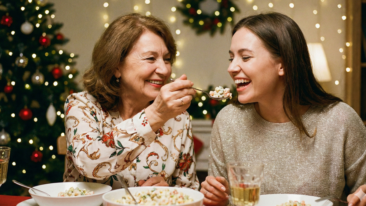 Вернувшись к столу, Лена посмотрела на идеально сервированную тарелку мужа, к которой тот так и не притронулся. Затем перевела взгляд на большую хрустальную салатницу с оливье. Взяла большую столовую ложку, зачерпнула салат прямо из общего блюда — огромную, неприличную порцию.