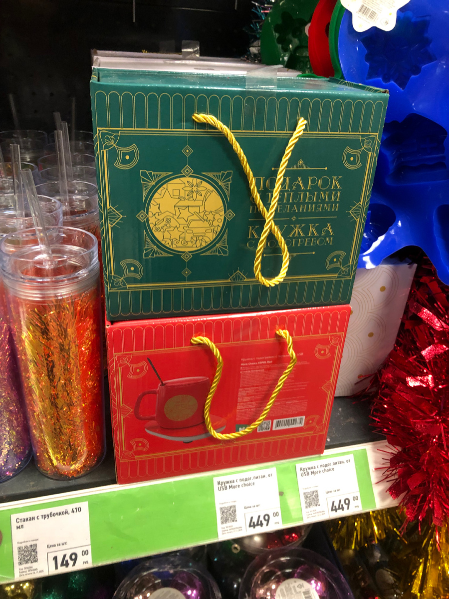 Всем огромный привет! Сегодня у меня для вас обзор новинок и ассортимента в магазине Фикс Прайс. На этой неделе замечательный привоз! Снова в продаже кружки с подогревом. Обычно их разбирают на подарки. Они продаются в красивой упаковке с ручками. На выбор два цвета. Цена 449 рублей. Кружка с крышкой в виде Елочки. Она изготовлена из боросиликатного стекла. Объем 410 мл. Продается в коробке. Цена 249 рублей. Новинка! Кружка с новогодним декором. Они представлены в ассортименте. Изготовлена кружка из керамики. Объем 400 мл. Цена 99 рублей. Конфетница стеклянная на металлической подставке. Объем 650 мл. Изготовитель Китай. Цена 279 рублей. Конфетница очень красивая, оригинальный дизайн. Стакан стеклянный с рифленой поверхностью. Украшен золотым ободком. Объем 380 мл. Цена 99 рублей. Также есть бокалы для вина. Они объемом 350 мл. Цена 124 рубля. Привезли сувениры. Статуэтка «Герой года». На выбор есть несколько вариантов: «Важная шишка», «Король санфаянса», «Генератор