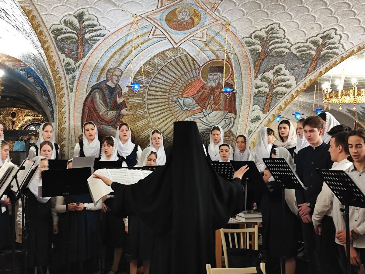 Учащие и учащиеся монастырской Александринской школы на всенощном бдении в Успенском соборе почтили память своего небесного покровителя