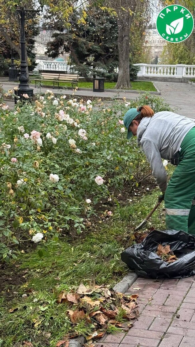 На Приморском бульваре сотрудники «Парков и скверов» провели комплексный уход за розарием